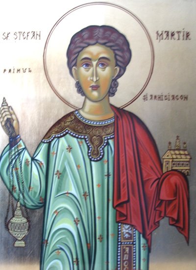 Apostole al lui Hristos cel mai întâi între diaconi, întărire Mucenicilor, cel ce marginile lumii le-ai Sfinţit cu chinurile şi minunile tale; sufletele credincioşilor le-ai luminat, pe cei ce te cinstesc cu credinţă mântuieşte-i din toate nevoile, ca să cântăm ţie: Bucură-te, întâiule Mucenice şi Arhidiacone Ştefane!